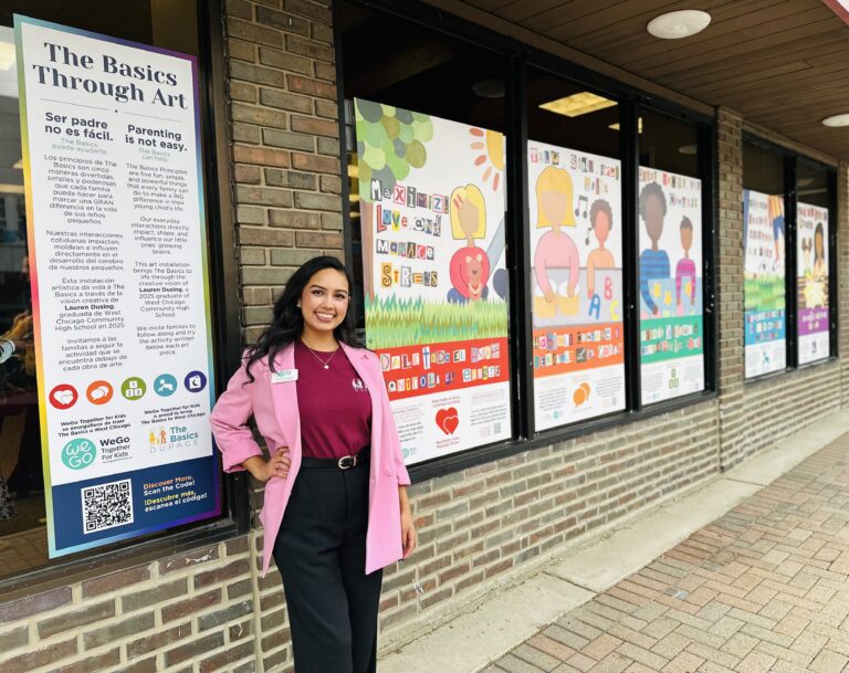 This month, we spoke with Jennifer Rodriguez, Early Childhood Manager at WeGo Together for Kids – West Chicago, about “The Basics Through Art”, a bilingual community art installation inspired by The Basics Inc. framework promoting early childhood development. In partnership with local organizations and West Chicago Community High School, they held art contests to engage students. The winning piece, by Lauren Dusing (Class of 2025), is now displayed at Republic Bank. The initiative continues to inspire families to practice The Basics—simple, powerful actions that support children’s growth and learning.